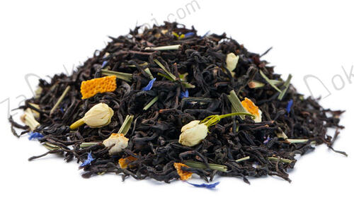 Смесь цейлонских и индийских чаёв с добавлением лепестков василька, цедры апельсина, лимонником, цветками жасмина и оригинальным ароматом бергамота.