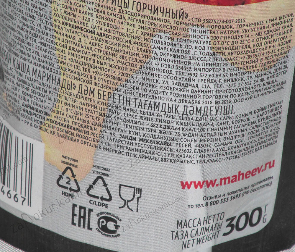 Маринад Махеевь в ассорт. 300г Маринад Махеевь в ассорт. 300гАртикул: p02-СВ000003564Штрих-код: 4604248014667Країна: Росія56,00 ₽ +- шт Додати у кошик