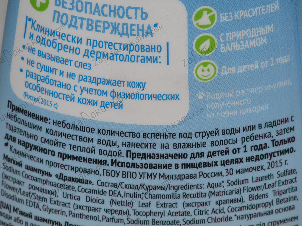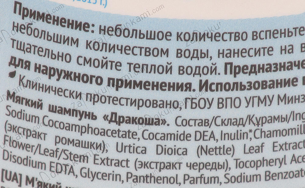 Шампунь мягкий Дракоша 240гр Шампунь мягкий Дракоша 240грАртикул: p02-Sr-00000557Штрих-код: 4600702097061Країна: РосіяВид засобу для волосся: Для дітей135,00 ₽ +- шт Додати у кошик